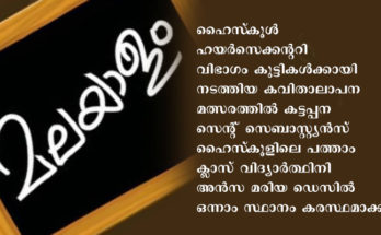 ഇടുക്കി : നവംബര് ഒന്ന് മലയാള ദിനമായും ഏഴുവരെ ഭരണഭാഷാ വാരമായും ആഘോഷിക്കുന്നതിന്റെ ഭാഗമായി ജില്ലാ ഇന്ഫര്മേഷന് ഓഫീസ് വിദ്യാര്ത്ഥികള്ക്കായി സംഘടിപ്പിച്ച ഒണ്ലൈന് മത്സരങ്ങളുടെ ഫലം പ്രഖ്യാപിച്ചു. ഹൈസ്കൂള് ഹയര്സെക്കന്ററി വിഭാഗം കുട്ടികള്ക്കായി നടത്തിയ കവിതാലാപന മത്സരത്തില് കട്ടപ്പന സെന്റ് സെബാസ്റ്റ്യന്സ് …