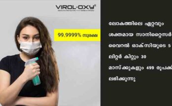 ലോകത്തിലെ ഏറ്റവും ശക്തമായ സാനിറ്റൈസര് വൈറല് ഓക്സിയുടെ 5 ലിറ്റര് കിറ്റും 30 മാസ്ക്കുകളും 499 രൂപക്ക് ലഭിക്കുന്നു. ഓണ്ലൈനില് ബുക്കുചെയ്യുന്നവര്ക്ക് തപാലിലൂടെ വീട്ടിലെത്തിക്കുകയും ചെയ്യുന്നു. www.mybaloon.com എന്ന വെബ് സൈറ്റിലൂടെ ബുക്കുചെയ്യാവുന്നതാണ്. സമ്പൂര്ണമായി ആല്ക്കഹോള് രഹിതമായ സാനിറ്റൈസറാണിത്. ഒരിക്കല് ഉപയോഗിച്ചാല് …