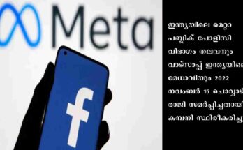ന്യൂഡൽഹി: ഫെയ്‌സ്ബുക്ക്, വാട്‌സാപ്പ്, ഇൻസ്റ്റഗ്രാം തുടങ്ങിയവയുടെ മാതൃകമ്പനിയായ മെറ്റയിൽ രാജി തുടരുന്നു.ഇന്ത്യയിലെ മെറ്റാ പബ്ലിക് പോളിസി വിഭാഗം തലവനും വാട്‌സാപ്പ് ഇന്ത്യയിലെ മേധാവിയും 2022 നവംബർ15 ചൊവ്വാഴ്ച രാജി സമർപ്പിച്ചതായി കമ്പനി സ്ഥിരീകരിച്ചു.അതേതുടർന്ന് ഇന്ത്യയിലെ മെറ്റ പബ്ലിക് പോളിസിയുടെ പുതിയ ഡയറക്ടറായി …