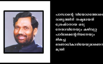ന്യൂ ഡൽഹി: അന്തരിച്ച മുൻ കേന്ദ്രമന്ത്രി റാംവിലാസ് പസ്വാന്റെ ന്യൂഡൽഹിയിലെ വസതിയിലെത്തി ആഭ്യന്തരമന്ത്രി അമിത്ഷാ അന്തിമോപചാരമർപ്പിച്ചു. മുതിർന്ന കേന്ദ്ര മന്ത്രിമാരിൽ ഒരാളായ റാം വിലാസ് പസ്വാന് അന്തിമോപചാരമർപ്പിച്ചതായി അദ്ദേഹം ട്വിറ്ററിൽ കുറിച്ചു. മാന്യമായ പെരുമാറ്റം കൊണ്ടും പൊതുജന ക്ഷേമം മുൻനിർത്തിയുള്ള പ്രവർത്തനങ്ങൾ …