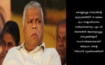 ആറളം ഫാമിലെ സുരക്ഷയുടെ ഉത്തരവാദിത്തം സർക്കാരിന്; നഷ്ടപരിഹാരം നൽകണമെന്ന് എം വി ജയരാജൻ Read More