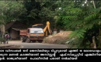 ചേര്‍ത്തല: ചേര്‍ത്തല സര്‍ക്കാര്‍ അതിഥി മന്ദിരത്തിന് സമീപം പൊതുമരാമത്ത് വകുപ്പ് ഓഫീസ് വളപ്പില്‍ സൂക്ഷിച്ചിരുന്ന മണല്‍ കടത്തിയതായി പരാതി . 2020 ഡിസംബര്‍ 10ന് ജെസിബിയും ടിപ്പറുമായി എത്തി 10 ലോഡോളം വരുന്ന മണല്‍ കടത്തിയാതി അസിസ്റ്റന്റ് എക്‌സിക്യൂട്ടീവ് എഞ്ചിനീയര്‍ എന്‍. …