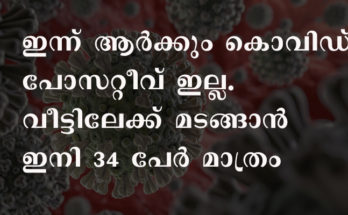 ഇന്ന് ആര്ക്കും കൊവിഡില്ല, രോഗമുക്തരാകാന് 34 പേര് മാത്രം