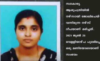കോട്ടയം: കീഴൂരില് യുവതിയായ നഴ്സിനെ വീട്ടിനുളളില് തൂങ്ങി മരിച്ച നിലയില് കണ്ടെത്തി. സ്വാകാര്യ ആശുപത്രിയില് നഴ്സായി ജോലിചെയ്ത് വന്നിരുന്ന നഴ്സ് ദീപയാണ് മരിച്ചത്. 2021 ജൂണ് 25 വെളളിയാഴ്ച പുലര്ച്ചെ ഒരു മണിയോടെയാണ് സംഭവം. ജോലിക്ക് പോകുന്നത് ഭര്ത്താവ് വിലക്കിയതിനെ തുടര്ന്നാണ് …