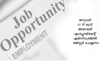 ജില്ലയിലെ അർദ്ധസർക്കാർ സ്ഥാപനത്തിലെ ഹെൽപ്പർ (പേ ലോഡർ ഓപറേറ്റർ) തസ്തികയിലേക്ക് 2 ഒഴിവുകൾ നിലവിലുണ്ട്. നിശ്ചിത യോഗ്യതകൾ ഉള്ള ഉദ്യോഗാർത്ഥികൾ ജനുവരി 24ന് മുമ്പ് അതാത് എംപ്ലോയ്മെൻറ് എക്സ്ചേഞ്ചിൽ പേര് രജിസ്റ്റർ ചെയ്യണം. പ്രായപരിധി 18 നും 41 നും മധ്യേ. …