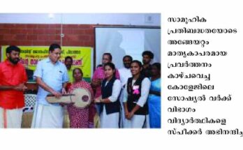 പിലാത്തറ: സെന്റ് ജോസഫ്സ് കോളേജ് നടപ്പിലാക്കിവരുന്ന സാമൂഹിക പ്രതിബദ്ധത പദ്ധതിയുടെ ഭാഗമായി നിര്മിച്ച വീടിന്റെ താക്കോല് കൈമാറ്റം സ്പീക്കര് അഡ്വ. എ. എന് . ഷംസീര് നിര്വഹിച്ചു. സാമൂഹിക പ്രതിബദ്ധതയോടെ അങ്ങേയറ്റം മാതൃകാപരമായ പ്രവര്ത്തനം കാഴ്ചവെച്ച കോളേജിലെ സോഷ്യല് വര്ക്ക് വിഭാഗം …
