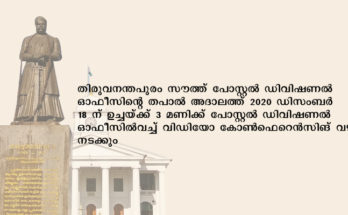 തിരുവനന്തപുരം സൗത്ത് പോസ്റ്റല് ഡിവിഷണല് ഓഫീസിന്റെ തപാല് അദാലത്ത് 2020 ഡിസംബര് 18 ന് ഉച്ചയ്ക്ക് 3 മണിക്ക് പോസ്റ്റല് ഡിവിഷണല് ഓഫീസില്വച്ച് വിഡിയോ കോൺഫെറെൻസിങ് വഴി നടക്കും. തിരുവനന്തപുരം സൗത്ത്ഡിവിഷണല് ഓഫീസിലെസേവനങ്ങളുമായി ബന്ധപ്പെട്ട പരാതികള് അദാലത്തില് പരിഗണിക്കും. അദാലത്തില് പരാതികള് …