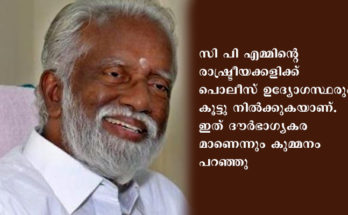 തിരുവനന്തപുരം: സാമ്പത്തിക തട്ടിപ്പ് പരാതിയിൽ തനിക്കെതിരെ എഫ് ഐ ആർ രജിസ്റ്റർ ചെയ്ത നടപടി രാഷ്ട്രീയ പ്രേരിതമെന്ന് ബി ജെ പി മുൻ സംസ്ഥാന അധ്യക്ഷൻ കുമ്മനം രാജശേഖരൻ. പ്രാഥമിക അന്വേഷണം പോലും നടത്താതെയാണ് തന്നെ കേസിലെ പ്രതിയാക്കിയത്. സി പി …