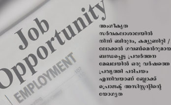 എറണാകുളം: വനിതാ ശിശു വികസന വകുപ്പിൻ്റെ സമ്പുഷ്ട കേരളം പദ്ധതിയിൽ ഒഴിവുള്ള ബ്ലോക്ക് കോ-ഓർഡിനേറ്റർ, ബ്ലോക്ക് പ്രൊജക്ട് അസിസ്റ്റൻ്റ് തസ്തികകളിലേക്ക് അപേക്ഷ ക്ഷണിച്ചു. അംഗീകൃത സർവകലാശാലയിൽ നിന്നുള്ള ബിരുദവും സോഫ്റ്റ് വെയർ ആപ്ലിക്കേഷൻ സപ്പോർട്ടിലും സാങ്കേതിക വിദ്യയിലുമുള്ള ഒരു വർഷത്തെ പ്രവ്യത്തി …