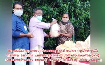 കോട്ടയം: കോവിഡ് മഹാമാരിയില് ദുരിതം അനുഭവിക്കുന്ന കോട്ടയം ആലപ്പുഴ ജില്ലകളിലെ അമരയിലും, പുറക്കാട്ടുമുളള 45 കുടുംബങ്ങള്ക്കുവേണ്ടി അംബേദ്കര് പ്രോഗ്രസീവ് ഡെമോക്രാറ്റിക് ഫോറം(എപിഡിഎഫ്.) നടത്തിയ കോവിഡ് ചലഞ്ചിന്റെ ഭാഗമായി നല്കിയ ഭക്ഷണകിറ്റിന്റെ വിതരണോദ്ഘാടനം എപിവൈഎഫ് പ്രസിഡന്റ് ഗണേഷ്പുറക്കാടും അമരയില് എപിവൈഎഫ് സെക്രട്ടറി സുനില് …