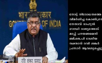 ന്യൂഡൽഹി: നോട്ട് നിരോധനത്തെ വിമർശിച്ച കോൺഗ്രസ് നേതാവ് രാഹുൽ ഗാന്ധി രാജ്യത്തോട് മാപ്പ് പറയണമെന്ന് ബി.ജെ.പി ദേശീയ വക്താവ് രവി ശങ്കർ പ്രസാദ് ആവശ്യപ്പെട്ടു.നോട്ട് നിരോധനത്തിനെതിരെ രാഹുൽ രാജ്യത്തും വിദേശത്തും പ്രചാരണം നടത്തി. അത് നിർഭാഗ്യകരമായിരുന്നു. ചിദംബരം അടക്കം കോൺഗ്രസ് നേതാക്കൾ …