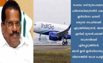 നടന്നു പോയാലും ഇനി ഇൻഡിഗോ വിമാനത്തിൽ കയറില്ലെന്ന് ഇ പി ജയരാജൻ Read More