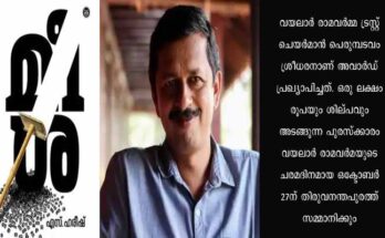 വയലാര് രാമവര്മ്മ മെമ്മോറിയല് പുരസ്കാരം നോവലിസ്റ്റ് എസ്. ഹരീഷ് രചിച്ച ”മീശ” നോവലിന് Read More
