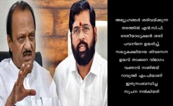 മുംബൈ: മഹാരാഷ്ട്രയില് ശിവസേന (ഏക്നാഥ് ഷിന്ഡെ)-ബി.ജെ.പി. സര്ക്കാരിന് അനുകൂലമായി പ്രതിപക്ഷനേതാവ് അജിത് പവാറിന്റെ നേതൃത്വത്തില് ഒരുവിഭാഗം എം.എല്.എമാര് എന്.സി.പി. വിട്ടേക്കുമെന്ന അഭ്യൂഹം ശക്തം. ശിവസേനയിലെ ഭിന്നിപ്പില് ഷിന്ഡേ പക്ഷത്തേക്കു കൂറുമാറിയ 16 എം.എല്.എമാര്ക്കെതിരായ അയോഗ്യതാനടപടിയില് സുപ്രീം കോടതി വിധി പറയാനിരിക്കേയാണിത്. അഭ്യൂഹങ്ങള് …