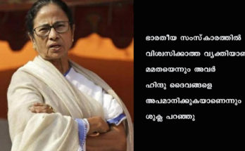 മമത ബാനര്ജി മുസ്ലിം തീവ്രവാദിയാണെന്ന് ബി ജെ പി നേതാവ്, തെരഞ്ഞെടുപ്പ് ഫലം പുറത്തുവരുമ്പോള് ബംഗ്ലാദേശിലേക്ക് മമതയ്ക്ക് നാടുവിടേണ്ടിവരുമെന്നും പരിഹാസം Read More