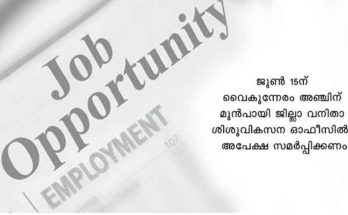 പത്തനംതിട്ട: സ്കൂള് കൗണ്സിലര് ഒഴിവിലേക്ക് അപേക്ഷ ക്ഷണിച്ചു Read More