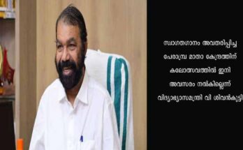 തിരുവനന്തപുരം : സംസ്ഥാന സ്കൂൾ കലോത്സവ സ്വാഗതഗാന വിവാദത്തിൽ നടപടിയുമായി സംസ്ഥാന സർക്കാർ. സ്വാഗതഗാനം അവതരിപ്പിച്ച പേരാമ്പ്ര മാതാ കേന്ദ്രത്തിന് കലോത്സവത്തിൽ ഇനി അവസരം നൽകില്ലെന്ന് വിദ്യാഭ്യാസമന്ത്രി വി ശിവൻകുട്ടി വ്യക്തമാക്കി. കലോത്സവ സ്വാഗത ഗാനവുമായി ബന്ധപ്പെട്ട് പരിശോധിച്ച് നടപടിയെടുക്കും. വേദിയിൽ അവതരപ്പിക്കുന്നതിന് മുൻപ് …
