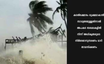 കേരള തീരത്ത് കടലാക്രമണത്തിന് സാധ്യത : ജാഗ്രത പാലിക്കണമെന്ന് ദേശീയ സമുദ്രസ്ഥിതിപഠന ഗവേഷണ കേന്ദ്രം Read More
