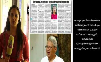 ഏഷ്യാനെറ്റ് ന്യൂസ് റിപ്പോർ‍ട്ടർക്കെതിരായ കേസ്: പ്രതികരിക്കാതെ യെച്ചൂരി, സർക്കാരിനെ വിമർശിച്ച് ദേശീയ മാധ്യമങ്ങൾ
