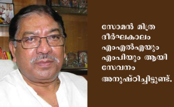 മുതിർന്ന കോണ്ഗ്രസ് നേതാവും പശ്ചിമബംഗാള് പി സി സി അധ്യക്ഷനുമായ സോമന് മിത്ര അന്തരിച്ചു.