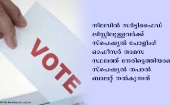 മലപ്പുറം ജില്ലയിലെ സ്പെഷ്യല് തപാല് ബാലറ്റ്: തപാലിലൂടെയും അയയ്ക്കും Read More