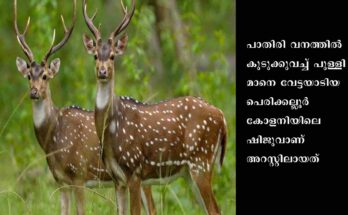 വനത്തിൽ കുടുക്കുവച്ച് പുള്ളിമാനെ വേട്ടയാടിയ സംഭവത്തിൽ ഒരാൾ അറസ്റ്റിൽ Read More