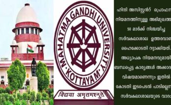 എം ജി സര്വ്വകലാശാല അധ്യാപക നിയമനം; പുതിയ മാനദണ്ഡം രൂപീകരിക്കണമെന്ന ഹൈക്കോടതി ഉത്തരവിന് സുപ്രീം കോടതി സ്റ്റേ Read More