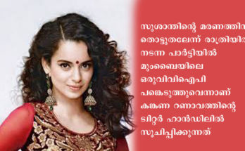 സുശാന്ത് സിങിന്റെ മരണവുമായി ബന്ധപ്പെട്ട പ്രമുഖന്റെ പേര് വെളിപ്പെടുത്തി കങ്കണ: തന്നെ തൂങ്ങി മരിച്ച നിലയില്‍ കണ്ടെത്തിയാല്‍ ആത്മഹത്യയാണെന്ന് കരുതരുതെന്നും മുന്നറിയിപ്പ് Read More
