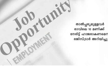 തിരുവനന്തപുരം: സി-ഡിറ്റില് വാക്ക് ഇന്- ഇന്റര്വ്യു Read More