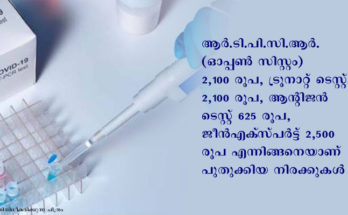 കോവിഡ് നിര്ണയം: ടെസ്റ്റുകളുടെ നിരക്ക് പരിഷ്കരിച്ച് ഉത്തരവായി