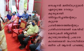 എറണാകുളം : കോവിഡ് പ്രോട്ടോക്കോൾ കർശന മായി പാലിക്കുന്നത് ഉറപ്പാക്കാൻ മജിസ്ട്രേറ്റിന്റെ അധികാരത്തോടെ നിയമിതരായവരാണ് സെക്ടറൽ മജിസ്ട്രേറ്റ്മാർ. വ്യത്യസ്ത തരക്കാരായ ആളുകളുടെ ഇടയിലേക്ക് ഇറങ്ങിച്ചെന്ന് അനുനയവും ശാസനയും കരുതലും ഒക്കെ ആയി ജോലി പൂർത്തിയാക്കിയ അവർക്ക് പറയാനുള്ളത് വ്യത്യസ്ത അനുഭവങ്ങൾ . …