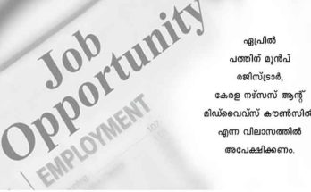 തിരുവനനന്തപുരം: കേരള നഴ്സസ് ആന്റ് മിഡ്വൈഫ് കൗൺസിൽ ഓഫീസിൽ ഒഴിവ് വരുന്ന രജിസ്ട്രാർ, ഡെപ്യൂട്ടി രജിസ്ട്രാർ, അക്കൗണ്ടന്റ് (ശമ്പള നിരക്ക് 25,200-54,000) തസ്തികകളിൽ ഡെപ്യൂട്ടേഷൻ നിയമനത്തിന് അപേക്ഷ ക്ഷണിച്ചു.രജിസ്ട്രാർ, ഡെപ്യൂട്ടി രജിസ്ട്രാർ തസ്തികകളിൽ യഥാക്രമം സർക്കാർ നഴ്സിംഗ് കോളേജിലെ പ്രിൻസിപ്പൽ/പ്രൊഫസർ, സർക്കാർ …