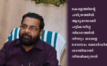 തിരുവിതാംകൂര്‍ ദേവസ്വം ബോര്‍ഡിൽ പട്ടികജാതി-പട്ടികവർഗ വിഭാഗങ്ങളിൽ നിന്നും 19 നിയമനങ്ങളെന്ന് മന്ത്രി കടകംപള്ളി സുരേന്ദ്രൻ; ചരിത്രം തിരുത്തി സർക്കാർ Read More