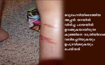 സംരക്ഷിക്കേണ്ടവരുടെ ക്രൂരതയ്ക്ക് ഇരയാവുന്ന പിഞ്ചുകുഞ്ഞുങ്ങളുടെ കഥയിലേക്ക് ഒരെണ്ണം കൂടി; മദ്യപിച്ചെത്തിയ പിതാവ് കാലില് തൂക്കിയെറിഞ്ഞു, പൊള്ളലേല്പ്പിച്ചു Read More