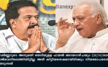തിരുവനന്തപുരം: ബാര് കോഴക്കേസുമായി ബന്ധപ്പട്ട് പ്രതിപക്ഷ നേതാവ് രമേശ് ചെന്നിത്തലക്കെതിരെ വിജിലന്സ് അന്വേഷണത്തിന്റെ നിയമ വശങ്ങള് ഗവര്ണ്ണര് ആരിഫ് മുഹമ്മദ് ഖാൻ പരിശോധിക്കും. ഗവര്ണ്ണറുടെ അനുമതി തേടിയുളള ഫയല് ഞായറാഴ്ചയും(22/11/2020) രാജ്ഭവനിലെത്തിയിട്ടില്ല. അത് കിട്ടിയശേഷമായിരിക്കും നിയമോപദേശം തേടുന്നത്. തെരഞ്ഞെടുപ്പുകാലത്ത് സര്ക്കാര് പ്രതിപക്ഷത്തിനെതിരെ …