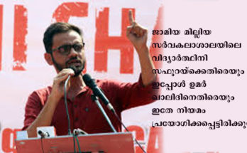 ഉമർ ഖാലിദിൻ്റെ അറസ്റ്റ് – യു എ പി എ ഭരണകൂട വിമർശകരെ തടവിലാക്കുന്ന കരിനിയമമെന്ന് വിമർശനം Read More