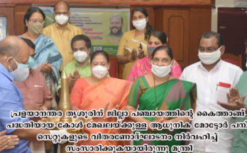 തൃശൂര്‍: കാര്‍ഷിക വിഭവം സംഭരിക്കുന്നതിന് ഒരു കേന്ദ്രവും, എല്ലാ ബ്ലോക്കുകളിലും കാര്‍ഷിക വിജ്ഞാന കേന്ദ്രവും സ്ഥാപിക്കുമെന്ന് കൃഷി മന്ത്രി വി എസ് സുനില്‍ കുമാര്‍ പറഞ്ഞു. പ്രളയാനന്തര തൃശൂരിന് ജില്ലാ പഞ്ചായത്തിന്റെ കൈത്താങ്ങ് പദ്ധതിയായ കോള്‍ മേഖലയ്ക്കുള്ള ആധുനിക മോട്ടോര്‍ പമ്പ് …