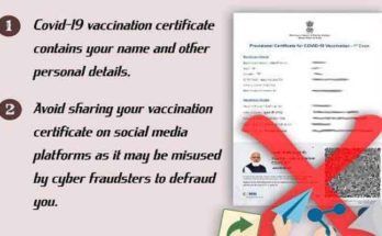 ന്യൂ ഡല്‍ഹി: കോവിഡ്‌ വാക്‌സിനേഷന്‍ സര്‍ട്ടിഫിക്കറ്റുകള്‍ സമൂഹ മാധ്യമങ്ങളില്‍ പങ്കുവയ്‌ക്കരുതെന്ന മുന്നറിയിപ്പുമായി കേന്ദ്രസര്‍ക്കാര്‍. സൈബര്‍ സുരക്ഷാ ബോധവല്‍ക്കരണ ട്വിറ്റര്‍ ഹാന്റിലായ സൈബര്‍ ദോസ്‌ത്‌ അക്കൗണ്ടിലൂടെയാണ്‌ ആഭ്യന്തര മന്ത്രാലയം മുന്നറിയിപ്പ നല്‍കിയിരിക്കുന്നത്‌ സര്‍ട്ടിഫിക്കറ്റില്‍ വ്യക്തിഗത വവിരങ്ങള്‍ ഉളളതിനാലാണ്‌ കേന്ദ്രസര്‍ക്കാരിന്റെ മുന്നറിയിപ്പ. സൈബര്‍ തട്ടിപ്പ്‌സംഘങ്ങള്‍ …