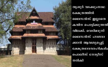 വടക്കുംനാഥ ക്ഷേത്രത്തിൽ കതിന പൊട്ടിക്കുന്നതിനുളള വെടിമരുന്ന് ലൈസൻസ് ഹാജരാക്കാൻ ആവശ്യപ്പെട്ട് ക്ഷേത്രഭാരവാഹികൾക്ക് പൊലീസ് നോട്ടീസ് Read More