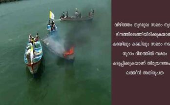വിഴിഞ്ഞത്ത് വള്ളം കത്തിച്ച് പ്രതിഷേധം; പൊലീസ് ബാരിക്കേഡുകള്‍ കടലിലെറിഞ്ഞ് പ്രതിഷേധക്കാര്‍ Read More