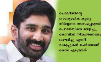 പാലക്കാട് : കലക്ട്രേറ്റിലേക്ക് നടത്തിയ മാർച്ചിൽ കോവിഡ് പ്രോട്ടോക്കോൾ പാലിക്കാതിരിക്കുകയും പോലീസിനെ മർദ്ദിക്കുകയും ചെയ്ത സംഭവത്തിൽ വി.ടി ബൽറാം എം.എൽ.എ ഉൾപെടെ ഇരുന്നൂറോളം പേർക്കെതിരെ ജാമ്യമില്ലാ വകുപ്പ് പ്രകാരം കേസ് എടുത്തു. പോലീസിൻ്റെ ഔദ്യോഗിക കൃത്യനിർവ്വണം തടസപ്പെടുത്തി, പൊലീസിനെ മർദ്ദിച്ചു, കോവിഡ് …