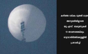 യു.എസ്. ബലൂണുകള് ഒരു വര്ഷത്തിനിടെ 10 തവണ വ്യോമാതിര്ത്തി ലംഘിച്ചു: ചൈന Read More
